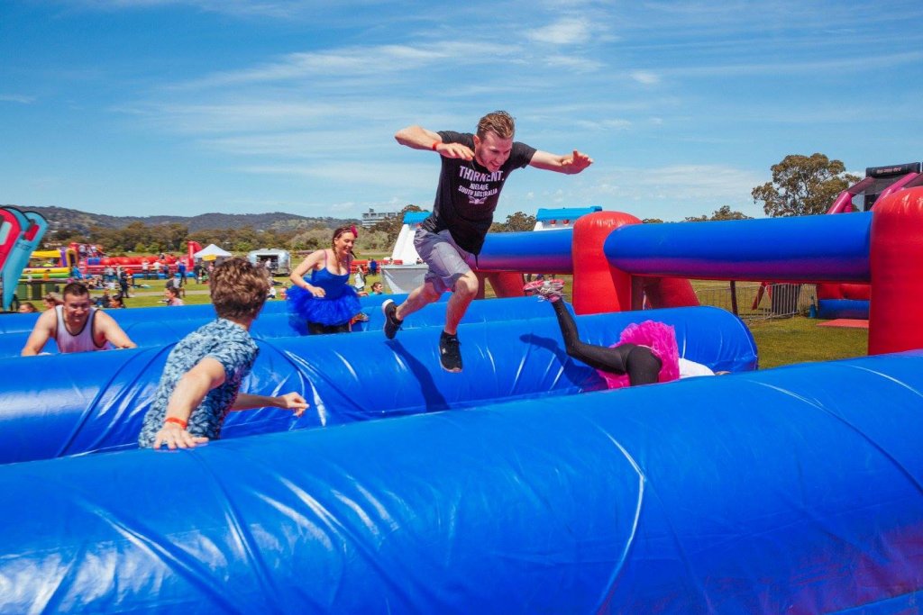 The Ridiculous Obstacle Challenge, also known as R.O.C Race, brought a new concept to town (and by town we mean Adelaide) called Ridiculous Playground. It’s the ROC Race (5kn obstacle race) without the running part, so basically a field of ridiculously fun obstacles to have a ball at, including the Barrel Bounce, Foam of Fury